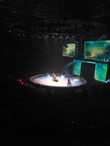 Read moreОчереди начинаются метров за 30 до входов (а их там штук ндцать и все забиты), не знаю уж почему - такое невероятно популярное представление мы посетили или это банально непродуманная планировка пространства. В гардероб вообще попасть довольно сложно, поэтому видела как многие шли на представление в верхней одежде. Такие же невероятные очереди и в туалеты, и в буфеты. Сам концертный зал заслуживает отдельных матных слов в адрес архитекторов. Взбираться вы будете на свой ряд как на гору, поэтому людям с больными суставами, маленькими детьми и тем кто боится высоты вообще не советую туда соваться. Особенно опасно с малышами, так как сиденья расположенны крайне высоко и ничем не огорожены плюс узенькие (сантиметров 30) проходы между рядами. Просто добраться до своего места на 20 ряду стало для нас экстремальным приключением. А спускалась я вообще с молитвой на устах, так как была на каблуках, а лестница там для скалолазов. Само представление было ниже среднего, разочаровало бы полностью если бы не спецэффекты в виде фонтанов и лазеров. Очень многие предпочли уйти после антракта и не тратить время, хотя билеты были от 1000р. Что касается самого здания, то конечно из плюсов можно отметить вид из окон. Инстаграмные фоточки сделать вполне по силам каждому, жаль что мы пришли туда не ради фотографий :) Сибур арена это именно спортивная арена и совершенно не подходит ни для чего кроме спортивных состязаний. То что ей пытаются найти альтернативное применение это здорово, но я точно больше в этом...