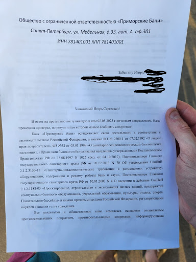 Read moreхожу в приморские бани около 3 лет, ранее это был мой любимый банный комплекс, где отмечала дни рождения и себе и сыну. последнее посещение расстроило, это был мой день рождения.пришла вдвоём с супругом расслабиться (алкоголь не употребляем вообще), именно полезно и приятно. в этот раз ходили в 1 класс, поскольку не с подругами. все шло хорошо до момента , когда я пошла в душевую мыться. в душе настроить температуру воды было крайне сложно, попробовала несколько дущей, подождала, с трудом добилась обычной тёплой воды. впрочем радость была недолгой, оказалось что температура воды в душе меняется от 15 до прямо горячей произвольно, за счёт неверного распределения в системе. спину обожгла себе конкретно, терморегулчторов нет. все пытавшиеся принять душ девушки то и дело выходили из душа и ждали, пытаясь настроить воду, одна включила сразу 3 душа. те остаётся только прийти полностью мытой и принимать душ в общих местах, где ситуация лучше. кажется там стоят регуляторы. после бани я уехала в ло на день, связи там нет. к сожалению, душ меня настолько разочаровал, да и спешить нужно было уже. в итоге я забыла забрать спортивное полотенце, которое положила в пустую сауну 1 класса подсушить. к вечеру оно было 100% сухое.уехали мы позже, пропажу я увидела только поздно вечером. а позвонить смогла через примерно 35 часов после ухода из бани. администратор сразу же сказала, что через сутки все оставленные утилизируется, якобы это на сайте есть в ПРАВИЛАХ ПОСЕЩЕНИЯ и в договоре Оферты указана стандартная фраза, что за оставленные вещи администрация не отвечает, разумеется не имеющая юридически ничего общего с утилизацией. никаких других отметок про сутки нет. а поскольку я прихожу с сыном 7 лет и хочу не напрягаться, меня вообще не устраивает, что любая вещь, а мб более ценная- фляга, дорогущий крем для лица- просто исчезает за сутки ( ясно, что ценное не выбросят, это легальный грабеж и все))))). другие посетители конпчно могут забрать, никто не спорит, но мне сращу сказали что выброшено без НО я работаю в большой клинике, наши пациенты тоже забывают вещи. такая же табличка висит в театрах, музеях и тп и нигде кроме приморских бань вещи через сутки не выбрасывают. к счастью ,в приморском районе это не один спа центр, тем более что и цена стала сильно дороже, а качесиво - явно хуже. те приходить можно, но только в высший класс и вещи прямо по списку проверяйте, когда уходите. если вы с детьми- лучше все выложить в общем месте и пересчитать, либо вы будете...