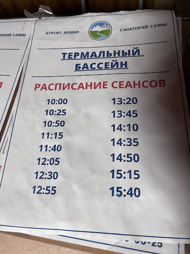 Read moreЕсть у меня замечательная семейная традиция, уходящая корнями в далекий 2013 год, когда мы с семьёй приехали на Аршан в зимний период. С тех пор мы каждый День Рождения жены отмечаем в Аршане - конец ноября. Довелость отметить 2 Новых Года здесь. И Всегда без исключения мы ездили купаться горячих источниках в посёлок Вышка! В этом году мы открыли для себя Термальный бассейн в самом Аршане. В этом году в Вышку не поедем! Здесь нравится больше! Людей меньше, цены такие же 250₽ взрослый, 150₽ детский. Раздевалки на много лучше и теплее! Но(!) нужно понимать, что состав воды в Аршане и в Вышке разный! Также нужно учитывать, что разная температура воды: в Аршане +45°С в Вышке +55°С. В самой чаше +32°С. Одним словом - рекомендую! Да, не забудьте при входе...