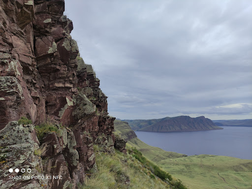 Маршрут пеший от кпп... по правилам от 4х человек. Ну если придумать, что едете на озеро Тус, тогда можно до подножья на машине. там наверх перепад 150м не больше, подъём занял минут 20, прогулка 30, 10 спуск. По сложности - на двоечку из пяти. Можно с детьми. С собакой не пустили. Нет обозначений. За пеший проход...