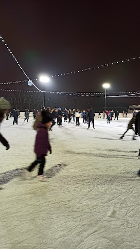 На этот каток приезжаю уже много лет в выходные по утрам к открытию . Жалко поздно в 10 только открывается. Лед заливают не очень хорошо, крошится и ямы бывают. Есть теплая раздевалка, достаточно большая со шкафчиками. Также есть прокат и туалет. Каток бесплатный. Заливают только два раза а день утром и в 17 часов , поэтому в 17 и перерыв получается. Народу всегда прилично, причём от мало и до велика. Можно доехать и общественным траспортом и на машине , есть большая бесплатная парковка. Место открытое поэтому бывает...