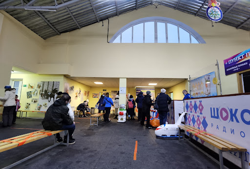 Давайте по порядку. Первое, с чем вы столкнётесь при входе в павильон катка - очередь на улице. Потом - очередь на получение карточки для прохода через турникет.