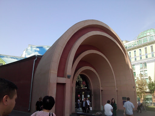 Nice neighborhood, two of the Seven Sisters in the area, and many beautiful historical buildings. Krasnye Vorota (Russian: Кра́сные воро́та, English: Red Gate) is a Moscow Metro station in the Krasnoselsky District, Central Administrative Okrug, Moscow, Russia. It opened May 15, 1935 as one of the initial ten stations of the Metro.[1] It is on the Sokolnicheskaya Line, between Chistye Prudy and Komsomolskaya stations. Work began on Krasnye Vorota in the spring of 1932 and proceeded smoothly despite fears that the untested three-arch design would collapse under the weight of the soil. The station opened without a delay on 15 May 1935.