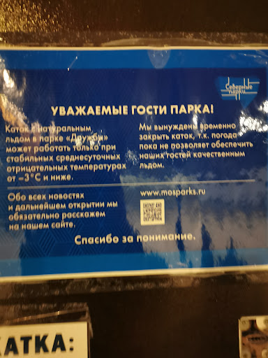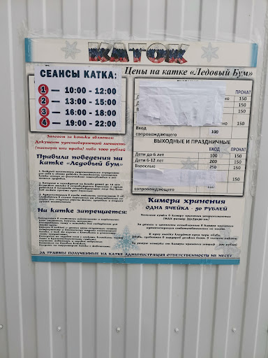Read moreДва балла за музыку и освещение. На большее баллов не хватило. Каток предполагает в первую очередь ровный лёд... А его там нет, от слова совсем...Перепады высот огромные и на малом расстоянии, такое чувство, что льдом залили бордюры... Людей достаточно, запускают нормированно, измеряя температуру. Много детей, для них есть пингвины. Есть прокат коньков, есть камера хранения за 50 руб) помимо стоимости билета... Такой каток должен если и существовать,...