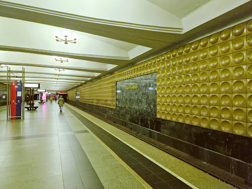 Read moreТема оформления станции — «Отдых москвичей». Путевые стены отделаны черным и тёмно-синим мрамором и плитками из штампованного алюминия. Пол выложен серым гранитом двух оттенков. Группы сидений, расположенные в центре по всей длине пассажирской платформы, совмещены с указателями станций. Освещение станции обеспечивает два ряда люстр с шестью шарообразными светильниками каждая, прикреплённых к...