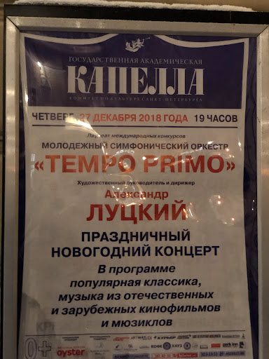 Amazingly stunning concert hall situated a stone's throw from Palace Square and the Hermitage. I came and heard an amazing performance of traditional Japanese shamisen. The acoustics in the concert hall were great, but the seating left my back aching. The theater is a 15 minute walk from the metro. There is a short cut through the courtyards if you follow the crowds after the concert. A worthwhile venue to...