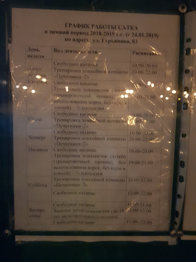 Read moreХороший районный каток с искусственным льдом. Работает даже при плюсовой температуре, что актуально для нынешнего (2019-2020) сезона. Есть раздевалки и туалет. По выходным профессиональный тренер бесплатно учит детей...