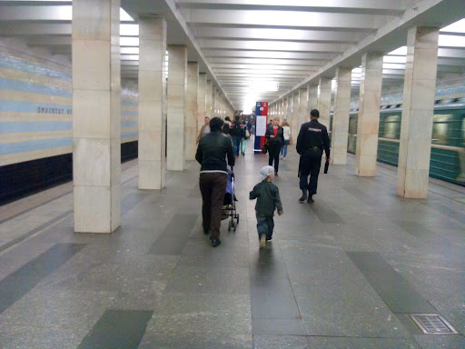 Read moreСтанция типовая сороконожка, потому что сорок колонн. Неглубокая, по лестнице попадаем в вестибюль, два выхода. Южный наземный, Северный встроен в торговый центр. Украшение станции мраморный бюст Вернадского художника Виленского. Рядом расположены ТЦ Обувь-Сити, большой парк 50-летия Октября,...