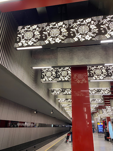 Я в восторге от новых станций метро! Светлые, современные, красивые. Станция открылась 7 декабря 2021 года. Самое красивое, на мой взгляд, в оформлении этой станции - это потолок: половина потолочных панелей выполнена из светопрозрачного материала с тонким листом нержавеющей стали, в котором вырезаны китайские орнаменты. Белое стекло панелей подсвечивается спрятанными внутри светодиодами. Построенная китайскими специалистами, станция имеет прямые отсылки к искусству этой страны. Главной темой оформления является китайский иероглиф, означающий дружбу, в окружении растительных гирлянд, которые напоминают о работах биолога Ивана Мичурина. Колонны ярко-алого цвета соответствуют национальному...