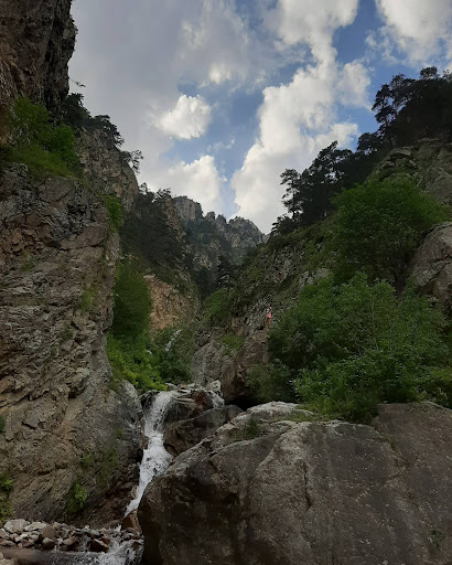 Отель «Вертикаль» - это первая по дороге в ущелье база отдыха европейского типа. Оттуда начинается дорога к водопаду, вход 100р. Обязательно сходите, природа сама вас заманит 🙃
