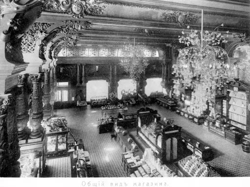 Excellent historic store downtown! Interiors are grand! When it was done in 1901 average Muscovites were too shy to get inside, it was too posh. Eliseev portraits are in various formats in and around the store. Dramatic family life for this guy though. He was too busy to cheat on his wife for very long time, but then by accident met this woman, who was married too, so he said he fell in love, began to live with her, renting 12 room bedroom for her. His many children were dismayed. Moscow store was opened in 1901 and in 1914, aften Grigory traveled to France with his new love, his wife after several failed attempts hung herself using towels. Grigory did not come for funerals and did not send wreath. After that his children totally cut their ties with him, denouncing even nobility status. Coulpe years later revolution broke out, 2 of his sons were shot. Grigory and his love moved to Paris, she died in 1946 and he died couple...