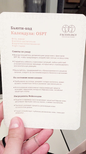 Read moreФЕЙСОЛОДЖИ - очень приятный салон у центре Москвы со своей уникальной стратегией действия. Я выбрала программу Faceology-массаж. Это часовая программа, где сначала мастер предлагает вам ответить на несколько вопросов касательно вашего здоровья, а затем с помощью специальных приборов тестирует вашу кожу, определяя её код и тип (названия цветов) и даст карточку с рекомендациями, исходя из чего уже назначает вам косметические средства для процедур. Далее вы идёте в "зону тишины" где не мега-удобном кресле тихонечко релаксируете в течение часа. Мастер предлагает вам надеть специальные одноразовые носочки и пеньюарчик поверх вашего нижнего белья/топа, смывает макияж, наносит необходимые средства, выполняет контрастный душ для вашей мордашки (горячее полотенце и лёд), затем делает лимфодренажный массаж и накладывает альгинатную маску (как будто резиновый цемент на все лицо, включая глаза и губы)))). Пока этот слепок вашей физиономии застывает, мастер делает вам массаж ручек. По окончании всей процедуры на лицо наносят крем и дают с собой мокро-баночку с его остатками, которой можно воспользоваться в течение 12 часов. По итогу вы получаете отдохнувший и свежий вид (кто-то даже засыпает), сияющую кожу и приятное тепло в мышцах лица. Рекомендую попробовать хотя бы раз. Цены для центра Москвы и часового спа-ухода...