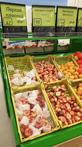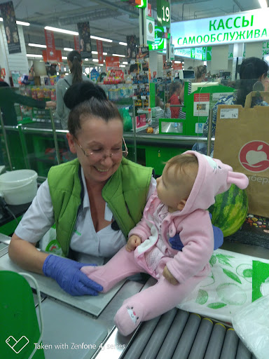 Плюсами является большой асортимент, приемлимые цены, качественный товар, дружелюбные сотрудники, очень искренние и приветливые люди, которые всегда помогут и улыбнутся. Плюсом также несомненно является свежая выпечка и собственная кухня. Можно покушать как в самом гипермаркете, так и взять абсолютно любые блюда. Гипермаркет постоянно удивляет чем-то новеньким. Иногда на наших глазах готовятся чебуреки (мне понравились), или какая-нибудь другая вкуснотища! На некоторые товары цены очень дешёвые. И ни дня в гипермаркете не обходится без различных скидок на товары. А ещё в предверии разных праздников очень нравится, как сразу преображается гипермаркет. Например: в предверии хеллоуина на прилавках стоят тематические тортики и сладости, а также различные декорации, а на прилавках с овощами и фруктами мигом выделяется место для тыковок ( оранжевых средних размеров, но очень красивых). А сегодня в предверии Нового 2017 года я была интересно удивлена, ближе к овощам и фруктикам стояли стелажи с ЕЛЬЮ В ГОРШОЧКАХ! Это было прикольно. Про оформление к новому году, говорить не буду( Всё отлично!!!) Минусов пока не наблюдается, за исключением одного маленького, очень-очень маленького, которого я даже не считаю значительным. Когда ходишь по гипермаркету, иногда натыкаешься на побитую плитку на полу. Остаётся только гадать, кто и при каких обстоятельствах побил её) Надеюсь, долго побитой она не будет:)