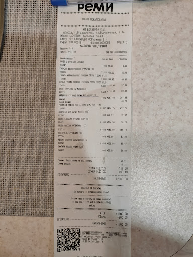Небольшой ассортимент при очень большой площади. Причём не лучшего качества. Например, нет грунтовых огурцов, а только китайские, да и то - подпорченные. Нет приморских помидоров, только подгнившие китайские. Молчу про остальные овощи. И это в разгар сезона! Август на дворе, очнитесь люди! Хотя в других магазинах сети, взять ближайший на Баме или на Русской, овощей навалом и на любой вкус. То же могу сказать и про растительное масло. Стоит небольшая полочка, на которой несколько брендов в разной фасовке. И только рафинированное подсолнечное и соевое. Всё! Ни оливкового, ни кукурузного, ни льняного. Нерафинированного вообще нет. На русской и Баме целые стеллажи какого хочешь. Ещё и по акции. К слову про акции: очень мало акционного товара! В общем, любого товара выбор крайне ограничен! Также выкладывают в зал товар, который ещё не поставили на приход.... Это как вообще? Для чего вы это делаете? Чтобы создать видимость ассортимента? На кассе продукты не упаковывают в фасовку. Например салаты или масло сливочное кассир должен дополнительно положить в фасовочный пакет. На вопрос, почему не укладывает, кассир нагрубил. Я же не прошу его уложить всё в общий пакет! Но дополнительная упаковка во всех магазинах Реми производится на кассе. В общем, не советую туда заходить. Я один раз там побывала, получила негативные впечатления, некачественный товар, потратила больше денег, чем планировала, т. к. нет акций и больше не пойду и вам не советую. А администрацию магазина призываю прислушаться к отзыву и принять меры. Так вы клиентов растеряете и участь трёх котов, которые были здесь раньше...