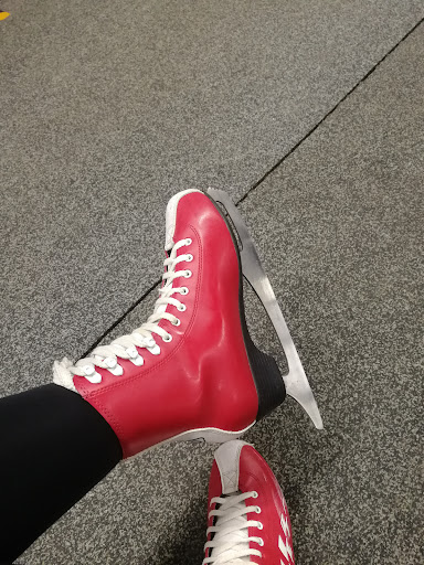Approaching a small ticket booth, somehow without recourse to the Russian language, the transaction was completed and we made our way past the armed rink security detail into the booting area. No one had mentioned the compulsory helmets referred to on the website. Well, she may have done, but I was in and I didn’t have any.