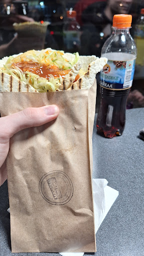 Read moreПришёл по совету одного товарища, взяли "фирменную шаурму". На вкус в целом неплохо, но могу сказать, что бывало и лучше. • Из плюсов: соуса немного (лично мне нравится) хороший лаваш • Что не понравилось: маловато мяса (как мне кажется)