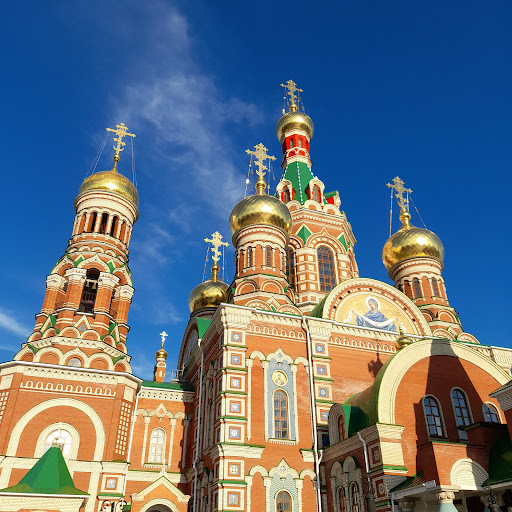Read moreБлаговещенский собор (мар.Благовещений соборышто) — православный храм в городе Йошкар-Оле, кафедральный собор Йошкар-Олинской епархии и Марийской митрополии Русской православной церкви. Расположен на площади Республики Пресвятой Девы Марии. Построен в 2010—2014 годах. Освящён 12 июня 2016 года.Собор находится на площади Республики Пресвятой Девы Марии, рядом с пешеходным Театральным мостом на пересечении бульвара Чавайна и Воскресенской набережной реки Малая Кокшага. У будущего собора в 2007 году была установлена скульптурная композиция «Пресвятая Богородица с младенцем Христом», в 2011 году в центре площади Республики Пресвятой Девы Марии — фонтан-памятник «Архангел Гавриил» Собор был заложен 29 октября 2010 года президентом Республики Марий ЭлЛеонидом Маркеловым и архиепископом Йошкар-Олинским и Марийским Иоанном. В 2013 году завершено строительство колокольни и установлены колокола. В конце октября 2014 года были освящены и установлены четыре больших купола с крестами, вес каждого составляет восемь тонн. Позднее установлены ещё пять куполов. 12 июня 2016 года собор освятил Патриарх Московский и всея Руси Кирилл. Тогда же был зачитан патриарший указ, согласно которому храм становится кафедральным собором Йошкар-Олинской епархии. Прежний кафедральный собор Вознесения Господня стал приходским храмом. Архитектура и реликвии. По архитектуре — собор крестово-купольный, шатровый, в русском стиле. Прообразом является храм Спаса на Крови в Санкт-Петербурге. Имеет пять куполов, колокольня расположена с северной стороны. Высота храма — 74 метра, вместимость — 2 тысячи человек. Фасады храма украшены мозаичными панно. В дар собору патриарх Кирилл передал икону Спаса...