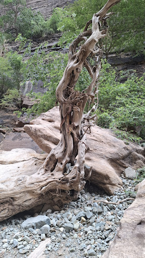 The narrow canyon walls rise high above you, creating a sense of awe and wonder. The path ahead is dotted with boulders and rocks, which you navigate with care. The silence of the desert is occasionally broken by the sound of water trickling nearby, a reminder of the life-sustaining force that has carved this magnificent landscape over thousands of years.
