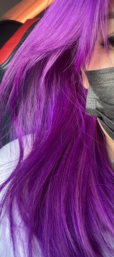 To show u the difference - The bright purple is what I wanted and the dark purple/red hair is what I got in the end.