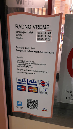 Read moreIznenadjujuce i osvezavajuce drugaciji asortiman od ostalih prodavnica kozmetickih preparata.Na primer, jako veliki izbir nemackih proizvoda i dijetetskih suplemenata i hrane i za bebe i odrasle , a takodje i kozmetike raznih brendova.Ono sto mi je interesantno je da imaju veliki izbor aromaticnih ulja (koje koristim za usisivac na vidu)nemackih proizvodjaca.Takodje je i veliki izbor cetki za kosu i lice, raznih turpija za nokte, preparata za negu lica i tela, kozmetike za licnu upotrebu i kucne hemije.Ono sto me odusevljava je sto uvek imaju na dobrom popustu...
