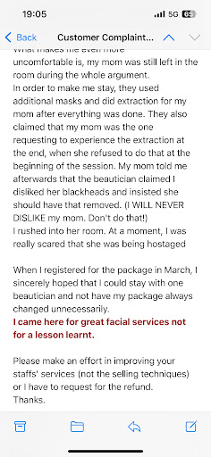 Initially I had went there just for the trial as I thought it was affordable + my back was really aching. The session itself was quite relaxing, you get a room to yourself and the massage was not bad. Until the hardselling starts. Winnie came in to promote their other packages that were wayyy out of my budget as a student because she came in to point out how bad my back was. Initially I did refuse, but she continued to push for it after bringing me into the consulting room. She might convince you by giving you a "special package" that she should not be selling because she's giving it at an affordable price and will give you mathematical breakdowns of how affordable it is. So, I took the deal since I had abit extra from my internship. I probably should have read the terms abit more clearly or at least clarified with Winnie since I thought there shouldn't be a problem. She said she would handle it for me and that it would be okay. So I had signed it under a different number and name , per her instructions.