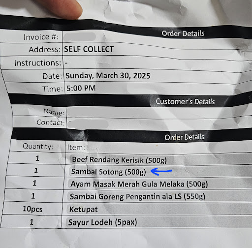 I am making a review for Lagun Sari Kitchen at JTC. I already made a pre order on the 2nd of March 2025 to self collect today 30th March 2025 at 5pm. I reached there 4.45pm for self collection and waited till 6pm to finally get my order. 1hr 15mins wait, just to collect an order that was made one month ago. There was a long queue of people waiting to collect at 5pm too. But during this time the staff were rushing order for their lalamove delivery drivers . And nobody attended to us(self collect) until all the delivery orders were finished. Why cant you make a seperate section where people who self collect, can collect their order and another section can settle the delivery orders esp during high volume orders like today? Even macdonalds does this. From my observation, the staff movements were very messy. Even when the self collect orders were about to be given. I waited and only got my order at 6pm. In between there's a staff who came out and apologized, told that they had to cook more chicken and offer free mutton to compensate our long wait. I think this is a good gesture by them. But what is disappointing was some of my orders are wrong! The guy who came out and gave my order kept saying "everything is inside,everything is inside". I roughly check the containers and quantity does tally but when I got home there some wrong orders! My sambal sotong order was replaced with sambal udang, my boneless ayam masak merah was replaced with ayam masak merah gula melaka. I prefer to get my orders right rather than getting free mutton. I contacted them through whatsapp, the rep told me all their drivers are out. I offered to return to get my sambal sotong, but the rep said there's none left and all staff are preparing for their own iftar. I appreciate that the replies were fast and I was offered a refund for the sambal sotong. Put yourselves in my shoes, do you like it if this happens to you? I also want to have the correct order for my iftar and raya for my family. With all that been said, I have to be fair your food is 10/10 delicious. But I have to write this so that you can improve on your service. This is not your first time taking orders for Raya. I want to order from you in the future provided I wont go through all these again. But how do I know these wont be repeated? Last picture is the last mintute job compensation free...