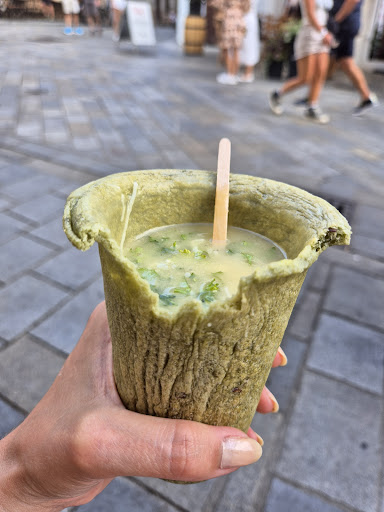Read moreOverall a good experience with delicious soup in an edible cup. I liked the cup very much and the machine that makes the cup is super cool. The bread tasted good and was crispy. The soup was also good (garlic soup) and I liked that you could ad toppings like parsley and cheese. I only gave the food 4 stars because I think the soup could use a little more love. A more creamy texture and deeper taste would really have made it perfect. But nonetheless I would stil recommend you to try it. I also like the concept of not using single use plastic. And it's also...