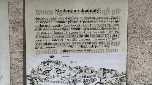 Read moreKarner vznikol vedľa farského kostola Narodenia panny Márie v 15. storočí za účelom ukladania telesných pozostatkov zo starších hrobov z neďalekého cintorína. V 16. storočí pri požiari, ktorý zachvátil mesto, kostol aj samotný hrad, vyhorel a stavba sa ďalej využívala ako zbrojnica. Významnú úlohu zohrala najmä v období tureckých vpádov. Aktuálne je zrekonštruovaná a nachádza sa tu zbierka sakrálnych umenia - niekoľko plastík zo 16. -18. storočia. Parkovanie je možné v centre mesta napr. na Palackého ulici alebo bezplatne na vyznačených miestach na Brezine. V rámci prehliadky hradu - Veľkého okruhu za 12 eur na osobu máte vstup do karneru, katovho domu, múzea v Beckove, Čachticiach, Novom meste nad Váhom do...
