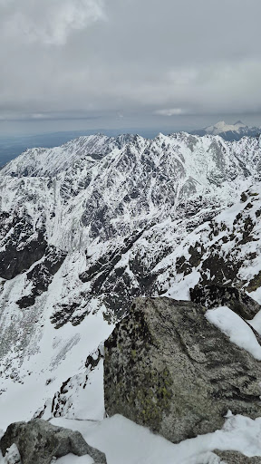 A turystom, którzy łańcuchozie dawno powiedzieli "papa", baaardzo polecam przejście granią z wierzchołka turystycznego na taternicki i z powrotem. Oczywiście, można tam dojść też odchodząc od szlaku w lewo przy żlebie, zaraz za Świnicką Przełęczą, ale to nudna opcja, łatwiejsza jeszcze niż turystyczne dojście na główny wierzchołek. Prawdziwą frajdę daje przejście granią, bo to niesamowicie przyjemna, jedynkowa przeprawa, która zajmuje 7 minut na taternicki (trudności I+) i 5 minut z powrotem (trudności I). Na komfort psychiczny wpływa brak przesadnej stromizny, tzn pionowych ścian przepaści po bokach. Po drodze jest parę pętli i ringów, bo ćwiczą tam też taternicy, ale żaden sprzęt nie jest tam potrzebny. Zaznaczam jednak, że to rekomendacja dla turystów zaawansowanych. Jeśli nie wiesz co to "trudności jedynkowe", nie zrobiłeś/aś nigdy Orlej Perci (0+), a w szczególności jeśli wolałeś/aś wejść na Świnicę od strony Kasprowego niż od Zawratu, to wierzchołek taternicki owszem, zdobądź, ale nie granią z turystycznego (bo nie chcę cię mieć na sumieniu), tylko od Świnickiej Przełęczy.