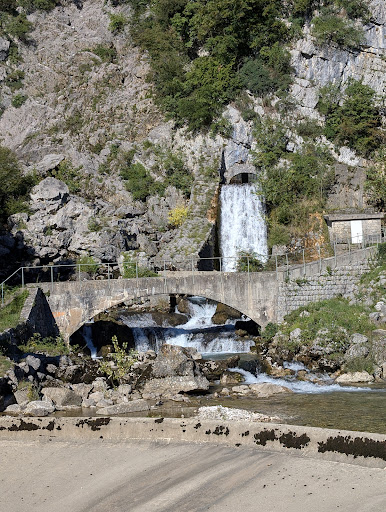 Reka, izvira iz skal na najmanj 11 točkah, in je dan prej popolnoma poplavila most in cesto, ki pelje dalje. Mi smo te prelepe izvire, ki izhajajo iz skal in tvorijo krase slapove ogledovali z varne razdalje na mostu. Tukaj so tudi zelo zanimive planinske poti, v bližini so tudi jame, ki jih raziskujejo jamarji... ob samem mostu je tudi elektrarna, ki ima naravni jez in izkorišča to silno vodo ter jo spreminja v elektriko.