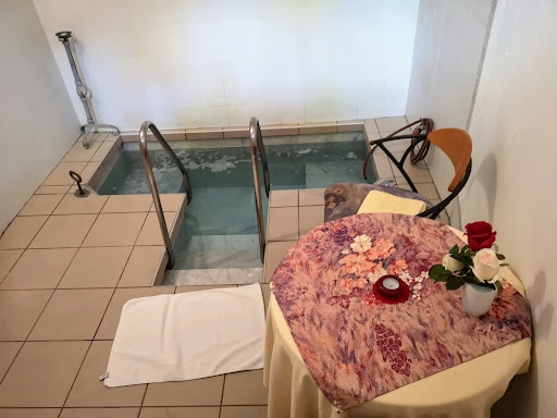 Read moreVon außen macht Gebäude unbenutzten Eindruck , wenige Hinweise ,dass sich hier die Therme mit Wannenbäder befindet Bäder: in Boden eckige Becken , Wasser wird zu jeder Nutzungen eingelassen Trinkbrunnen : es ist auch möglich nur Wasser zu holen Von den Hotels nur Zugang über den Park -...