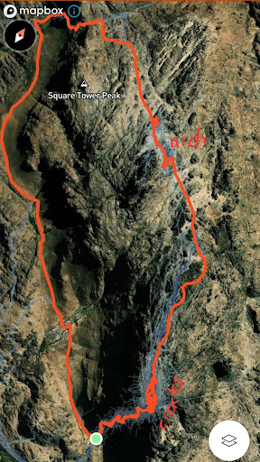 Since we had some in our group with bad knees and old injuries, we went down a different way, onto the jeep track. A circular route. Much longer but not as heavy going on the knees. However, if you can manage, going back the same way would be much shorter.
