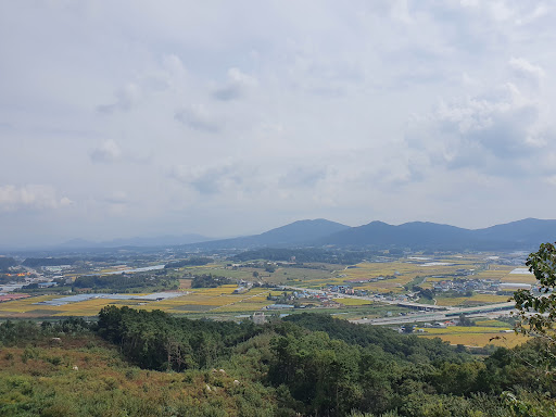주차 후, 성 동문의 오르막길로 오르면 약 2미터 높이의 정문을 지나 산성 내부 평지에 도달할 수 있습니다. 왼편의 성곽을 따라서 오르면 17번 국도가 시원하게 내려다 보입니다. 성곽을 따라 시계 반대방향으로 올라가면 남서쪽 정상에 소나무 한 그루와 비교적 넓은 평지가 있습니다. 서~북쪽면은 성곽 복원 공사중이라 성곽을 오롯이 걸어볼 수 없었습니다. 하지만 한반도의 산성 답게, 산 정상부의 넓은 사면을 품고 주변을 경계할 수 있는 구조를 또렷하게 볼 수 있었습니다.