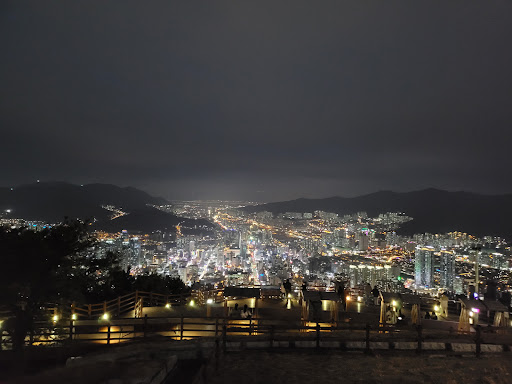 This place is worth visiting if you are coming to busan. This is like a hidden gem in busan. Most of the people who travel to busan doesn't know about this place. Since I am living busan that's why I came to know about it. If you want go to this place than taxi is the best option or else you can hike almost 2 kms to reach at the top. Since this mountain is between the busan city so it has two different views, one side showing the complete city of busan and other showing the gwangali bridge. If you are first time visitor than seeing the sunset is worth while here. And night view has it's on charm. There is one cafe on this spot other than that no other restaurant is avaialble. But you can enjoy dessert and good tea/coffee...