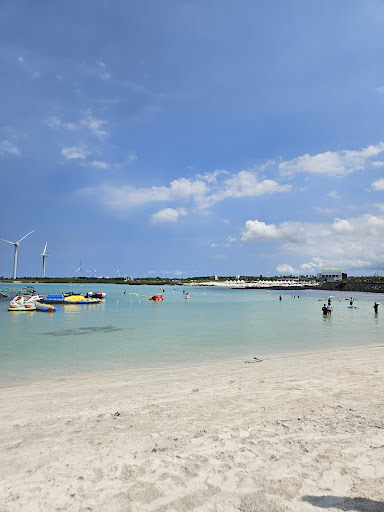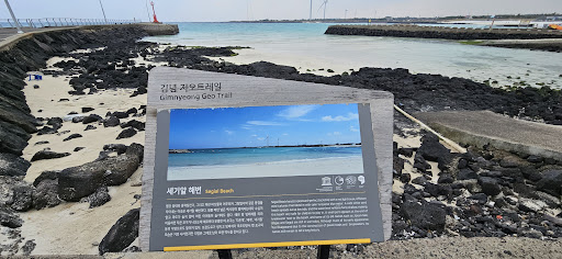 Read more김녕 옆의 매우 작은 해변 수심도 완만하게 얕아보인다. 좁아서 파도도 세지않아보임. 화장실이나 샤워실을 쓰려면 주변에 없어서 김녕까지 가야할듯? 차댈곳이 바로 앞에 있다.
