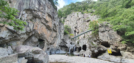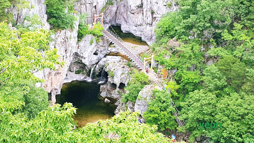Read more연산폭포에서 아래쪽으로 흐르는 계곡물이 두 갈래로 나뉘어서 관음폭포로 떨어지는 장관을 볼 수 있습니다. 윗쪽의 연산폭포 다리와 멋지게...
