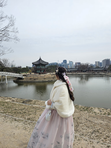 I would recommend doing your own make-up first, if in winter probably wear a light coloured thermal innerwear mine was black and kinda showed through the sleeves. I had such an amazing time pretending to be a princess in a korean drama walking around the palace with my emperor husband lol. Overall I would highly recommend this place. My hanbok was pretty and did not have any tears. I would not go to the more popular places as it was soo crowded with...