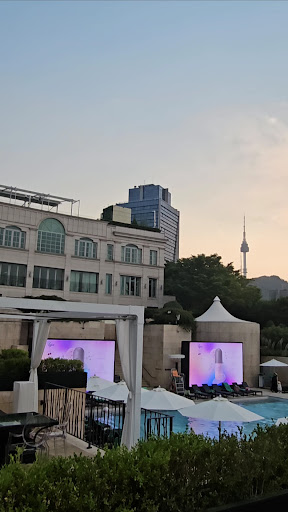 Oasis outdoor pool is a place where I can relax in the city center in the beautiful forest with a refreshing view of Namsan Mountain. It is where I can't feel I am in downtown anywhere else. It's like a fairy tale that's unrealistically beautiful.