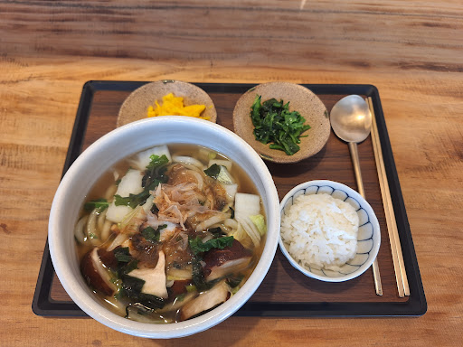 Read moreThis udon shop was located right outside of our Urbanstay Ikseon boutique hotel. We passed by multiple times on our daily outings in the morning and finally left late enough for a lunchtime meal. It did not disappoint! The kids had the pork udon, my husband the ginseng, and I had mushroom. The flavor of the soup was amazing! I am going back before I leave. I love the quaint and beautiful setting and dinnerware design (the brass spoon for soup is not a perfect oval, but slightly irregular and enhanced my eating experience)! The side dishes were also simple but flavorful. Such a cute place. If I lived here, I would not want to review and keep it to myself. :) Healthy, delicious udon soup that is...