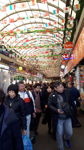 There are also stores selling souvenirs and local snacks which tourists can bring home for friends and loved ones. Additionally, there are shops selling fresh seafood, fruits and vegetables. A Han Bok (traditional Korean costume) market is located on the 2nd level within the market. There are shops selling household wares too.