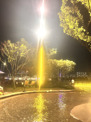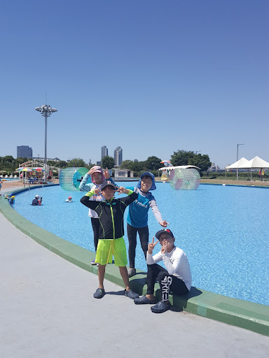 "A rip-off place" would be the most appropriate description of the place if you go with your kids. I'm fine with the entrance fee - that's a natural thing. But charging for using the inflated water slides inside the pool is something I would argue with. You have to rent a life jacket by paying 10 000 won to use the water slides even if you have your own. The parking lot cannot fit more than 20 cars taking into account the fact that most of the people come to the pool in their cars. The nearest parking lot is at least 700 meters away. Just imagine walking from the lot to the pool when it is 30+ degrees hot, and there are literally no sidewalks under the shade. In the long run, the Hangang Park where the pool is located is not a good place to go before...