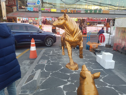 I met a "perfect storm"! First I have never been to Korea for almost half a century and I am a big fan of beef. As you can imagine, this meat trading market is a must for me to visit. I arrived on a Saturday night and strolled past the alley full of meat merchants. All out of a sudden, I had a vision in pink from the glittering marbling of a perfectly cut Korean beef. Literally spoilt for choice as everyone is busy introducing what they have on the shelf. I went through the aisle twice and finally decided on a shop that has a sign "SY", that's probably the only words I can comprehend. I was presumably greeted by the owners; husband and wife band. I picked the cuts I wanted from the display and the owner went to the packaging area to re-pack for me. After which, he asked his wife to bring me to the restaurant where I could barbeque my meat. Unfortunately, maybe it was Saturday night, I was alone and most restaurants were full and not ready to take in a solo diner. The owner's wife never gave up and assisted me all the way, walking up and down for at least 6 to 7 shops before I found my spot! My verdict, best in class Korean meat I have ever tasted at a very reasonable price. This is my third time trying, once in Hong Kong, second time in Jeju a few days ago. Personally, 3 things helped made this my most awesome experience. The friendly butcher, quality of the meat and last but not least, I was the chef throughout as I can grill the meat to the right doneness at my own leisure pace instead of a mass grilling by the restaurant waitress which is a common practice in Korea. If you are here, don't forget to look for the shop "SY" they are pretty near the main road stretch...