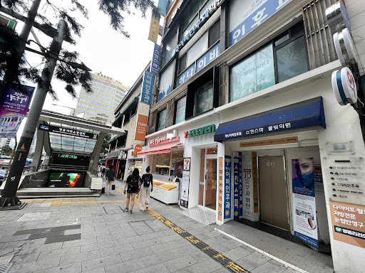 Directions: The spa is literally right outside of Exit 14 of the Underground Myeongdong Shopping center (see photo). The elevator is facing the street with a blue awning next to 7/11 and if you look up, you can see "skinspa" on the 4th floor of the building. It also says "skin spa aesthetic 4F" on the sign. Take the elevator up.