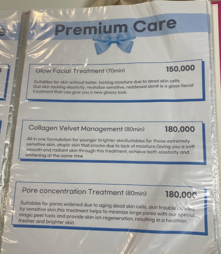 Ā Ā Ā Read moreI love my skincare treatment. Everyone here is really nice. They also offer the treatment with people that speak English. This treat was a seventy minute season. You can choose which treatment you would like to have. I chose the skin brightening treatment for my dark spots on my face. They will great you at the door and offer refreshments until it is your time. I booked my appointment on Klook for $89. I advise that you come to your appointment fifteen minutes early since the location can be challenging to find. I will come back again the next time...