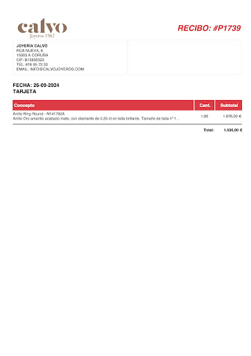 Read moreSábado 1 de marzo de 2025. Después de redirigirme desde la joyería Calvo de Plaza de Lugo para la sustitución de la pila de mi reloj Santos de Cartier, se me informa en la joyería de Rúa Nueva que ese cambio no se puede realizar en 20 minutos, que existe un protocolo Cartier de obligado cumplimiento, al que evidentemente yo no me opongo ya que siempre que he tenido que sustituir la pila, el reloj ha quedado el tiempo necesario. No obstante, me indican que harán una excepción y que en una hora me realizan el cambio de pila. Desde que dejó el reloj a las 12:36, tras 24 min, recibo un WhatsApp a las 13:01 y posterior llamada a las 13:08, indicando que el reloj ya estaba listo, para mi sorpresa dada la prontitud. Cuando llego para recoger el reloj, me lo entregan en mano, tras sacarlo de una bolsa de plástico, sin protección alguna y evidentemente sin signos de haberse realizado ningún protocolo Cartier de obligado cumplimiento, al que reitero yo nunca me negué. COSTE TOTAL: 50€ POR UNA PILA Y UNA FALTA ABSOLUTA DE...