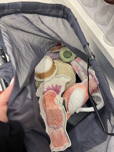 La bolsa era de las grandes y llena de ropa y accesorios. Yo dejé la bolsa rota con todo lo que compré en los bancos de fuera con mis amigas.
