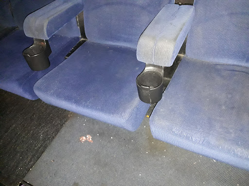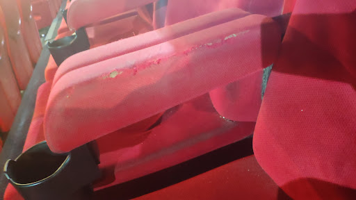 Ya durante la película estábamos por irnos, pero claro...al final te quedas. Total que pasamos el rato y cuando finalizó estaba buscando con la linterna del móvil, por si a los niños o alguno se nos había caído algo, y ese momento es de película de terror, los asientos roídos, llenos de mugre, rotos y de verdad que es para que venga sanidad a verlo.