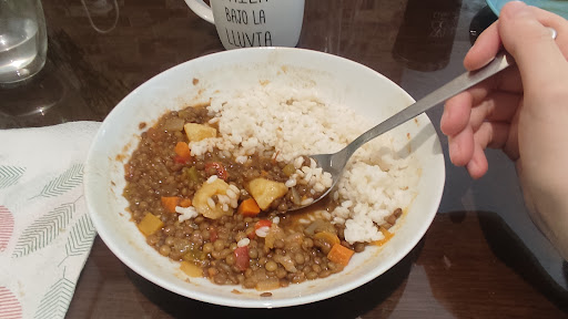 La comida está MUY buena, la cantidad (yo como mucho) de algunas cosas es un poco más alta, y de otras un poco más baja, pero en general está muy bien y con el plato que pides, un tomate partido o un poco de lechuga, y un trozo de pan, comes contundente. Las lentejas me gustan más con arroz :)