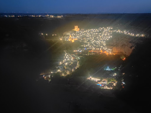 Es un sitio muy acogedor y bonito, con unas vistas increíbles, por la noche tiene que ser una delicia disfrutar de la cena allí. Buen servicio y calidad. El espacio es amplio, y cuenta con un pequeño jardín para disfrutar de una copa o refresco sin necesidad de pedir comida. En cuanto a calidad-precio no es muy disparatado contando en el lugar que se sitúa. No está permitido fumar dentro del recinto aunque estés al aire libre, pero la puerta...