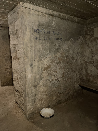 Read moreMuy emotivo. La reproducción del sonido de un bombardeo sobrecoge. Tine una capacidad de cerca de 2000 personas. Las entradas/salidas están diseñadas en forma de U con interposición de un muro que evitaba la entrada de metralla. Disponía de una pequeña y primitiva enfermería, pero que cumplía con sus funciones. Está compartimentados en pequeños receptáculos/habitaciones y un pasillo central de distribución. Algunas habitaciones disponían de bancos para ser utilizados por niños y personas mayores, el resto permanecía de pié. Era raro el día que no tenía que ser utilizado. Hay grafitis escritos en las paredes que contenían información básica sobre qué hacer y cómo comportarse en su interior. No disponía de aseos, imagínese lo que esto podría llegar a suponer. En Alicante había cerca de 100 refugios antiaéreos, el de la Plaza Séneca era uno de...